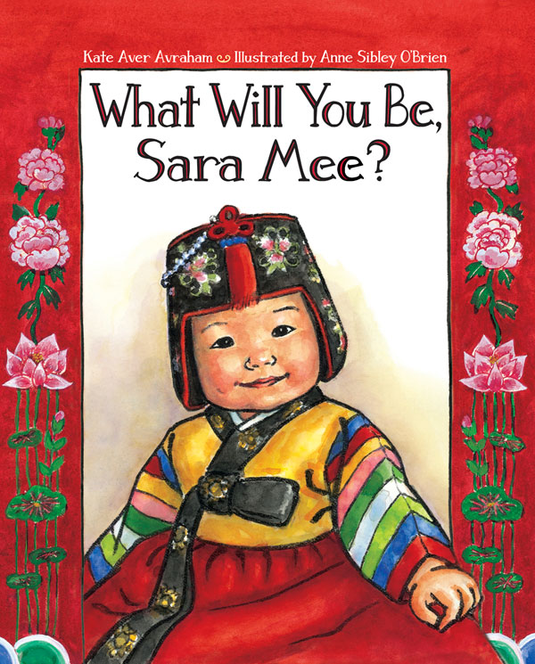 What Will You Be, Sara Mee? is Kate Aver Avraham's first picture book and it is very timely, given the new emphasis in many places on appreciating the traditions and rituals of people with different ethnic backgrounds. The illustrations are by Anne Sibley O'Brian who captures the familial delight in this Korean celebration. Indigenous People around the world have many similar rituals for children which give them a keen sense of the important role they are destined to play in the community. A baby's first tol enables family and friends to encourage the child in the path she or he has chosen. What Will You Be, Sara Mee? is aimed at children 3–6 years of age.